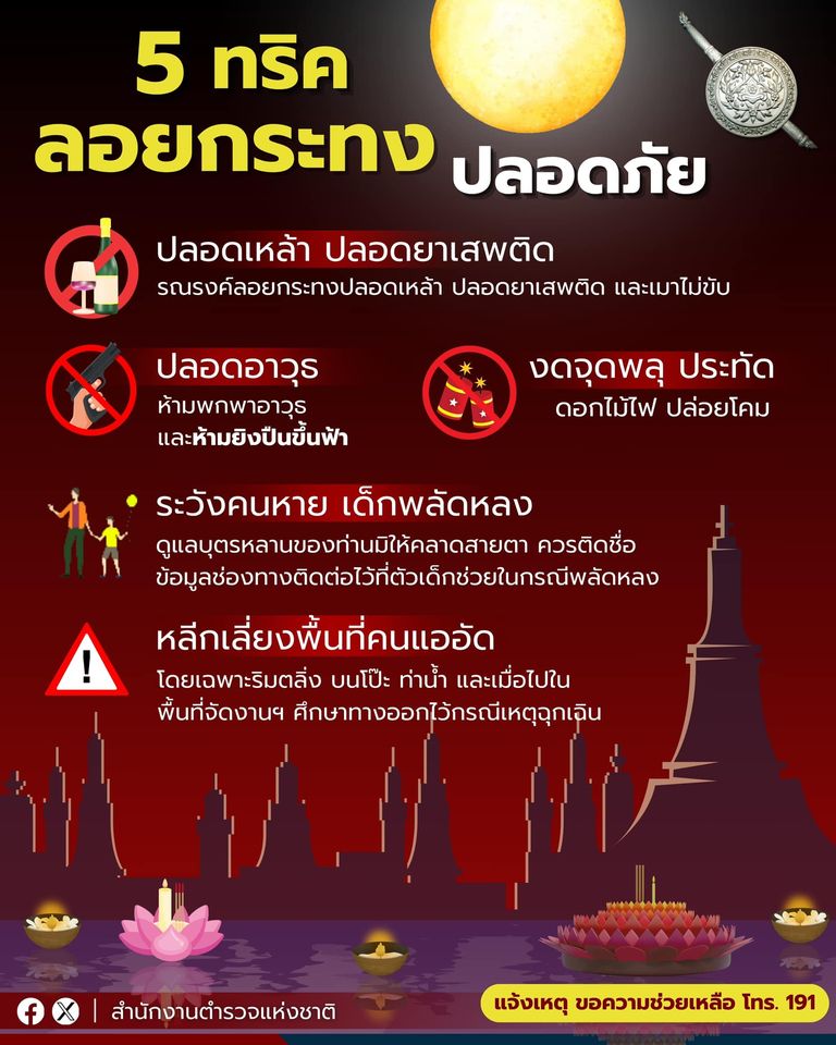 “ลอยกระทง” ปลอดภัย สำนักงานตำรวจแห่งชาติ แนะนำ 5 ทริค ทำกิจกรรมสืบสานประเพณีลอยกระทงปีนี้ อย่างปลอดภ