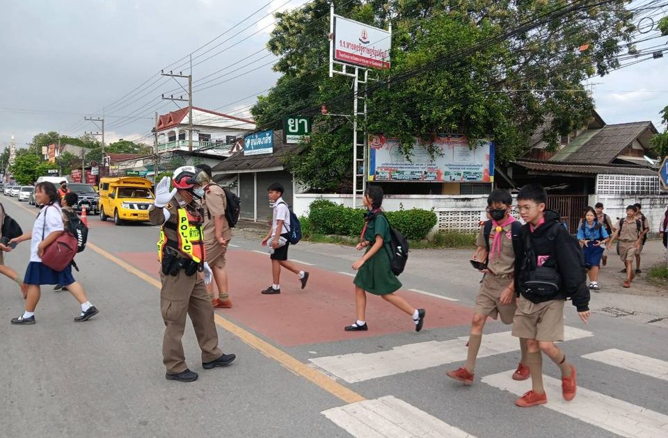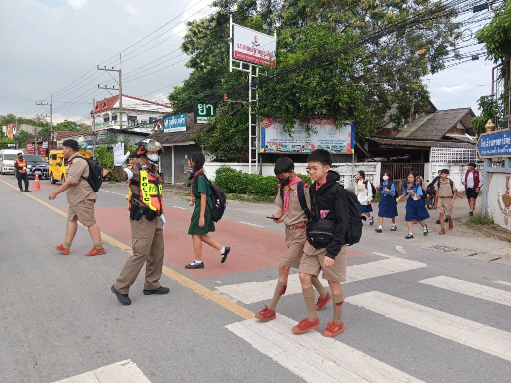 งานจราจรอำนวยความสะดวกการจราจรหน้าโรงเรียน