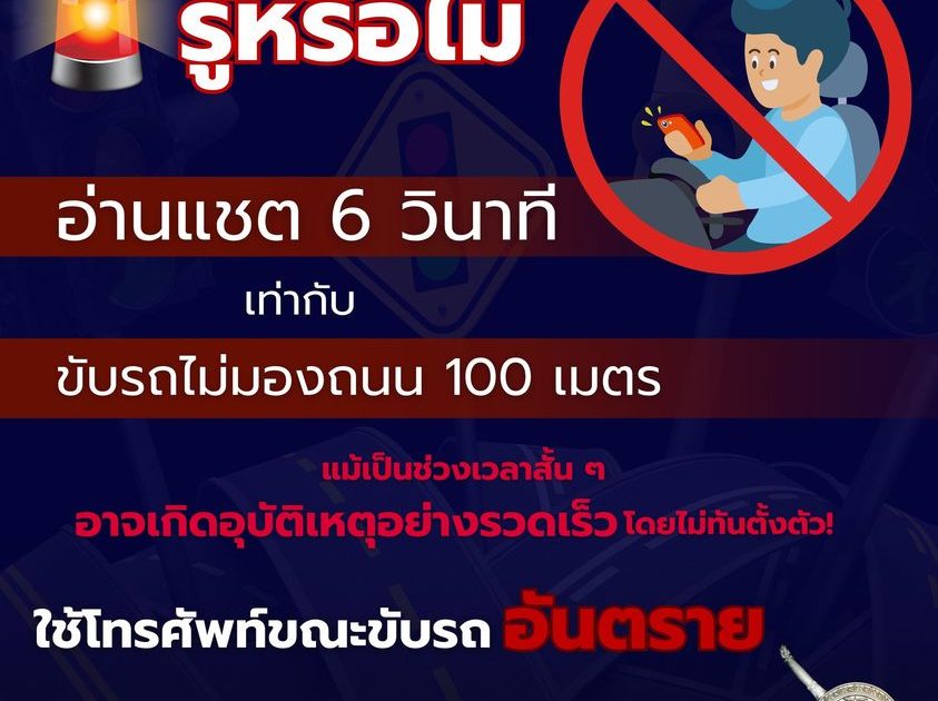 ทุกครั้งที่อ่านแชตเพียง 6 วินาที เท่ากับ ขับรถโดยไม่มองถนน 100 เมตร