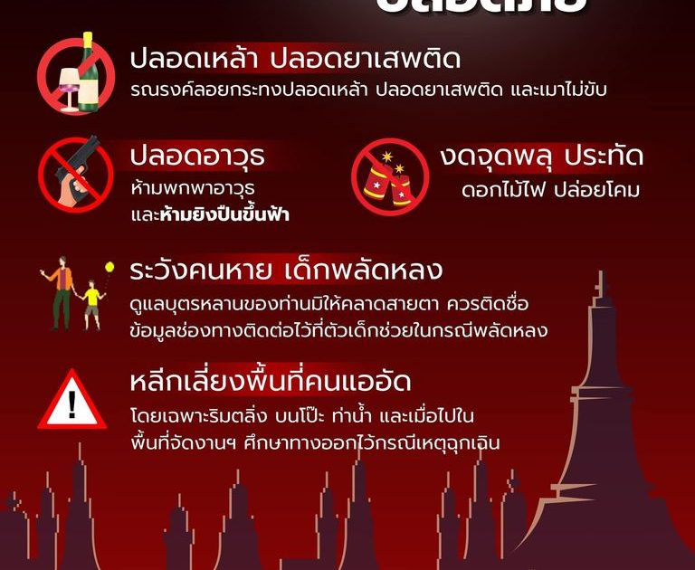 3.งดการจุดพลุ ประทัด ดอกไม้ไฟ และงดการปล่อยโคม โดยเฉพาะเขตพื้นที่ห้าม ที่กระทบการบิน ซึ่งอันตรายจากโคมยังอาจทำให้เกิดอัคคีภัยได้