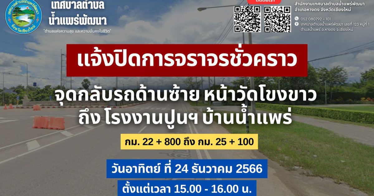 แจ้งปิดการจราจรชั่วคราว โปรดหลีกเลี่ยงการเดินทางในช่วงเวลาดังกล่าว