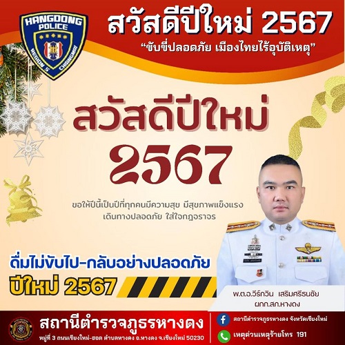 ด้วยความปรารถนาดีจาก พ.ต.อ.วีร์กวิน เสริมศรีธนชัย ผกก.หางดง ประชาสัมพันธ์ สถานีตำรวจภูธรหางดง จังหวั