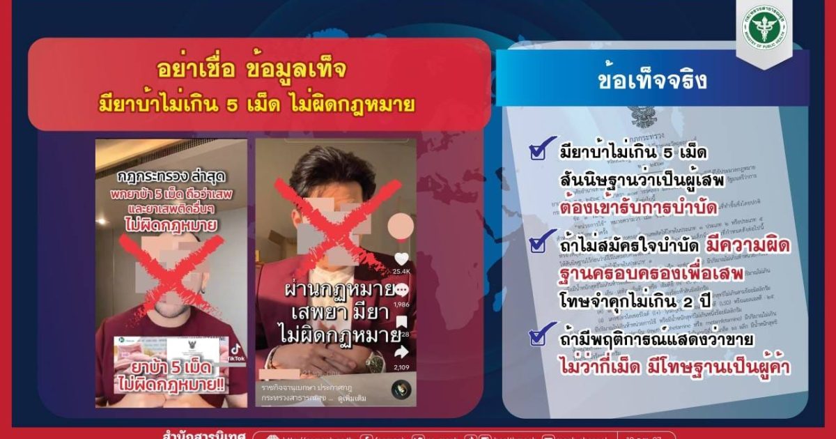 ✅️มียาบ้าไม่เกิน 5 เม็ด สันนิษฐานว่าเป็นผู้เสพ ต้องเข้ารับการบำบัด