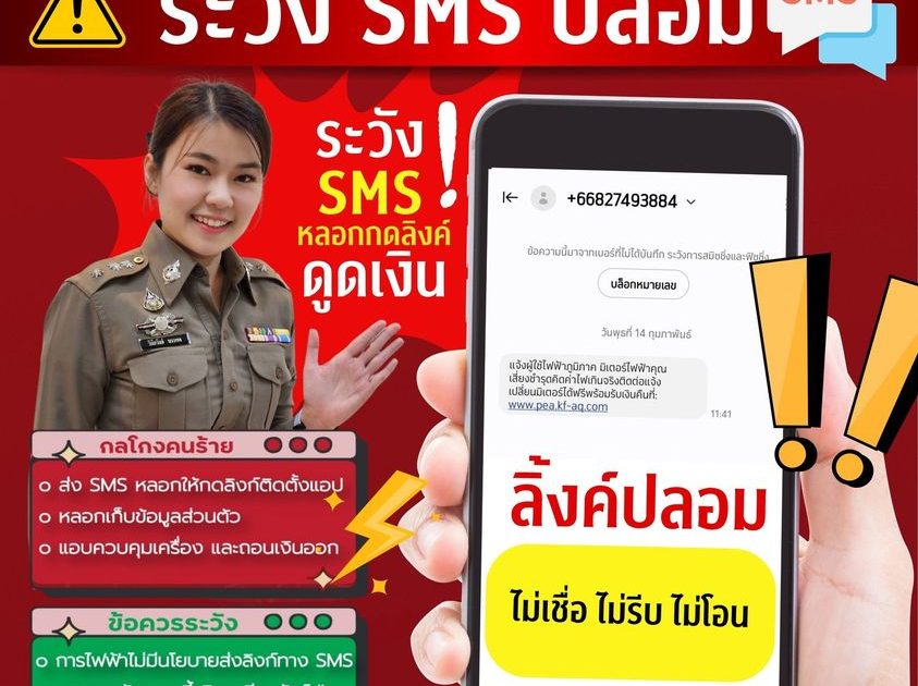 ตำรวจภูธรจังหวัดเชียงใหม่ เตือนมิจฉาชีพอ้าง เปลี่ยนมิเตอร์ลดค่าไฟ หลอกแอดไลน์ เพื่อติดตั้งแอปพลิเคชันปลอม เตือนอย่ากดลิงก์ที่มากับ SMS