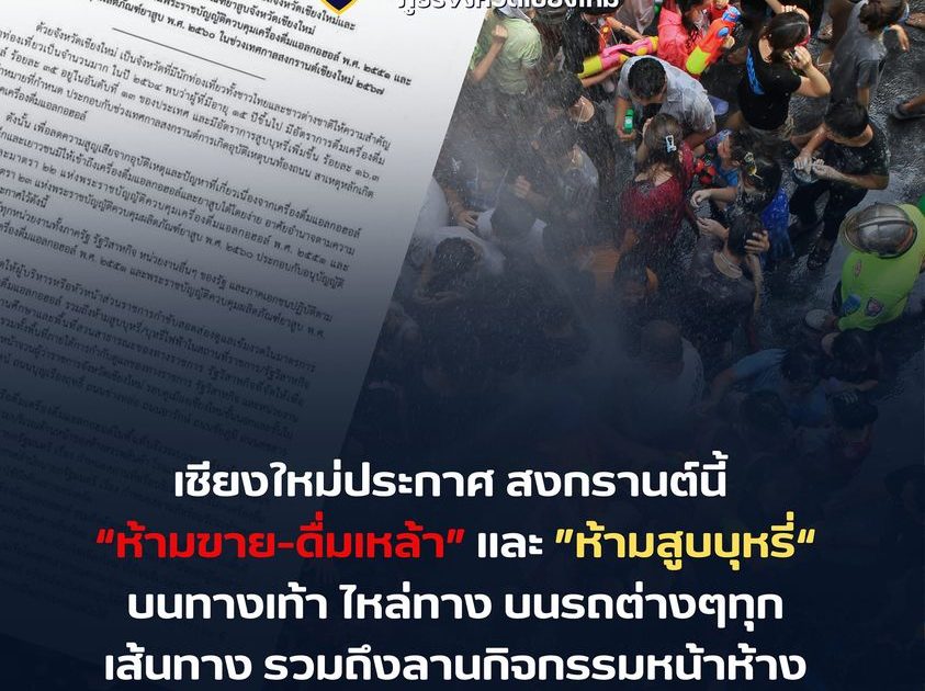 ขอความร่วมมือประชาชนงดดื่มเครื่องดื่มแอลกอฮอล์ หรือสูบบุหรี่/บุหรี่ไฟฟ้า ในขบวนแห่งานประเพณีต่างๆ อาทิ ขบวนสรงน้ำพระ ชบวนแห่ไม้ค้ำ และในพื้นที่สาธารณะ