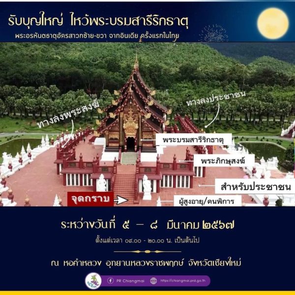สภ.หางดง ร่วมให้บริการประชาชนที่มาร่วมสักการะพระบรมสารีริกธาตุ 5-8 มีนาคม 2567