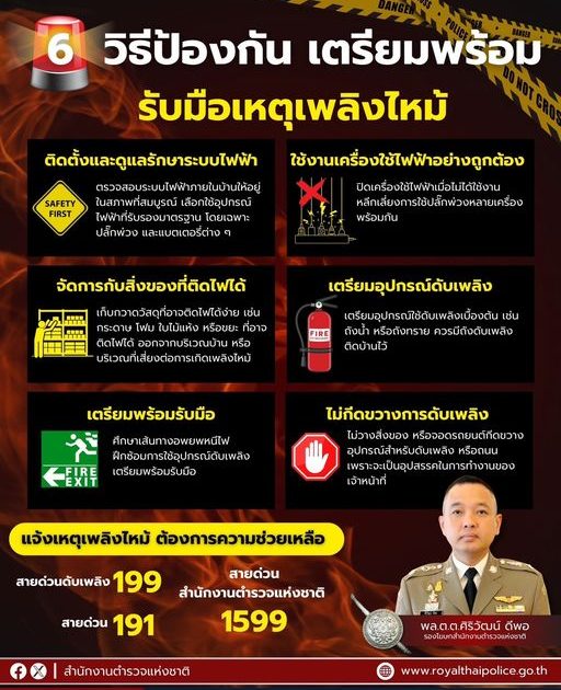 สำนักงานตำรวจแห่งชาติแนะนำ 6 วิธีป้องกัน และเตรียมความพร้อมรับมือเหตุเพลิงไหม้