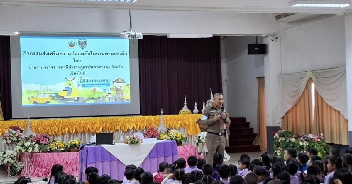 ได้มอบหมายให้ ร.ต.อ.ถนอมศักดิ์ ชาญเชี่ยว รองสว.จร.ตำรวจชุมชนสัมพันธ์ ร.ต.อ. ฉัตรชัย พรมตัน ได้เข้าให้ความรู้การจราจรกับนักเรียนอนุบาลเทศบาลหางดง