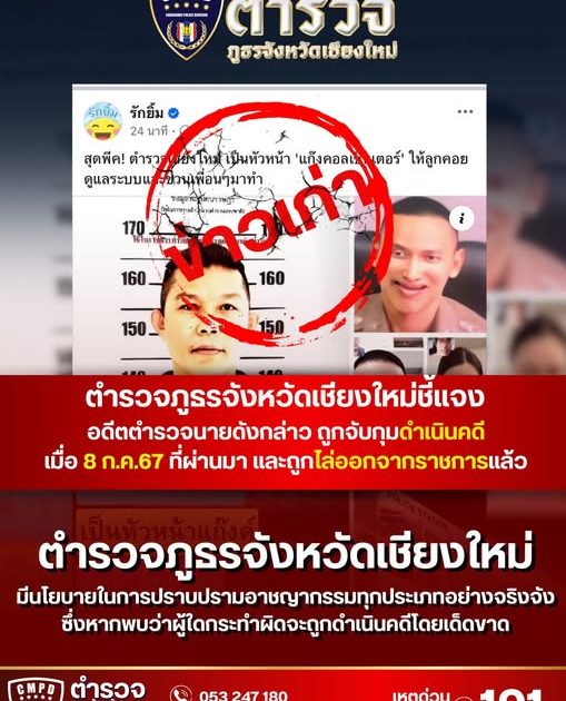 ตามที่ปรากฏในข่าวและสื่อ Online กรณีเพจที่ใช้ชื่อว่า”รักยิ้ม” ลงภาพและข้อความเมื่อวันที่ 1 มีนาคม 2568 “สุดพีก ตำรวจเชียงใหม่ เป็นหัวหน้าแก๊งคอลเซ็นเตอร์ ให้ลูกคอยดูแลระบบ และชวนเพื่อนๆมาทำ” นั้น