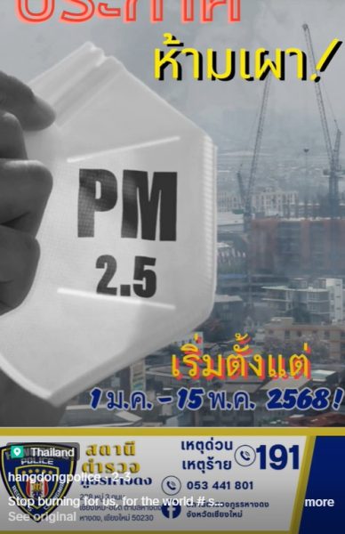 สภ.หางดง รณรงค์ห้ามเผาในที่โล่งทุกชนิด หากฝ่าฝืนมีโทษตามกฎหมาย