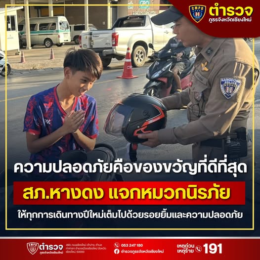 ความปลอดภัยคือของขวัญที่ดีที่สุด สภ.หางดง แจกหมวกนิรภัย ให้ทุกการเดินทางปีใหม่เต็มไปด้วยรอยยิ้มและคว