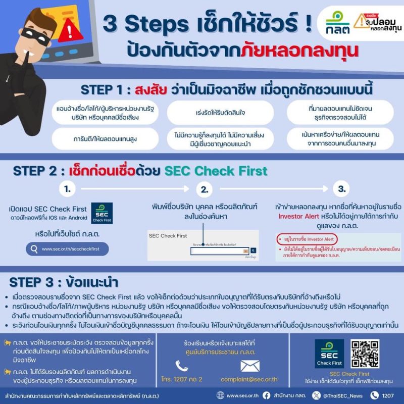 อย่าเชื่อ! อย่าแชร์! เช็กก่อนลงทุน! ก.ล.ต. #เตือนภัยหลอกลงทุน ขอเชิญชวนทุกท่านตรวจสอบข้อมูลทุกครั้งก