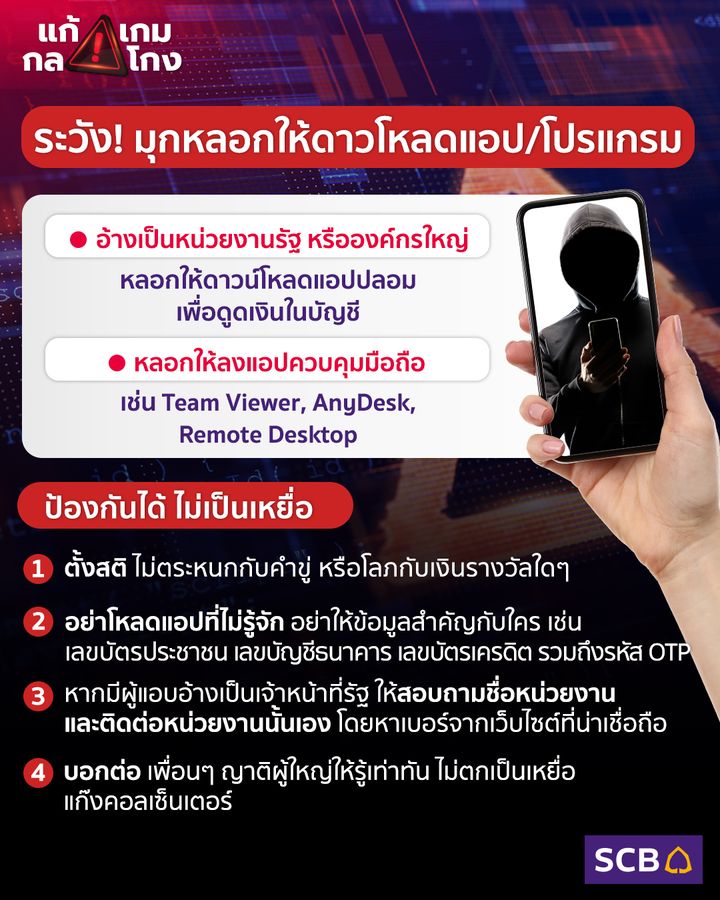 ช่วงนี้มิจฉาชีพหลอกให้ติดตั้งแอปปลอมเยอะมาก ทั้งแอบอ้างว่าเป็น กรมที่ดิน กรมบัญชีกลาง การไฟฟ้า บริษั